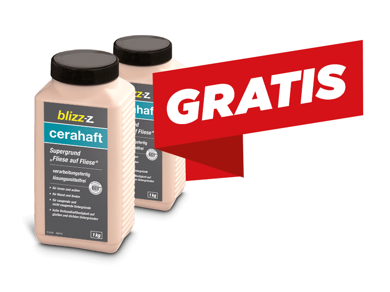 - Zusätzlich werden automatisch, auch ohne Aktionscode, 2 Flaschen cerahaft Supergrund Fliese auf Fliese Grundierung mit jeweils 1 kg Inhalt gratis** zum Warenkorb hinzugefügt
