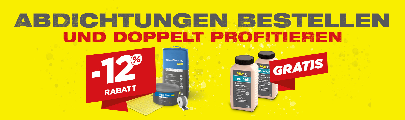 12 % Rabatt* auf alle Abdicht-Produkte + 2 kg gratis** Grundierung