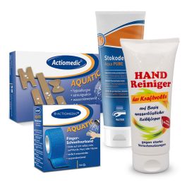 Die kl. Helfer für Notfälle. Die Pflegesremes ziehen sehr gut in die Haut ein und geben ihr viel Feuchtigkeit was man gleich spürt. Die versch. Pflaster sind für nahezu alle Stellen geeignet und kleben sehr gut auf der Haut aber man bringt sie auch wieder ab.